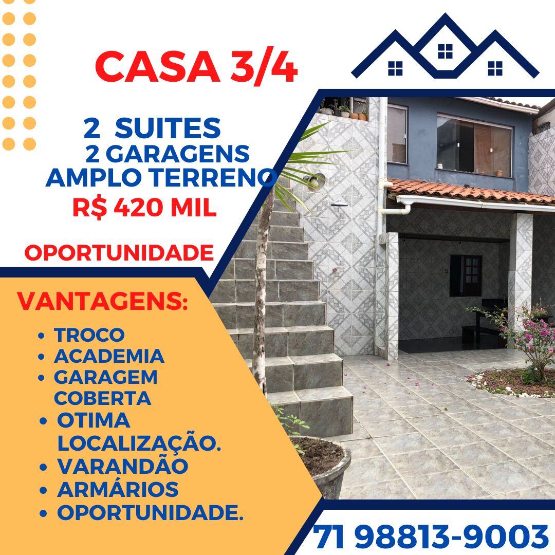 Nova Brasília de Itapuã - Salvador/BACasa 3/4 2 pavimentos 250M² terreno 2 garagens cobertas Itapua, Abaete oportunidade