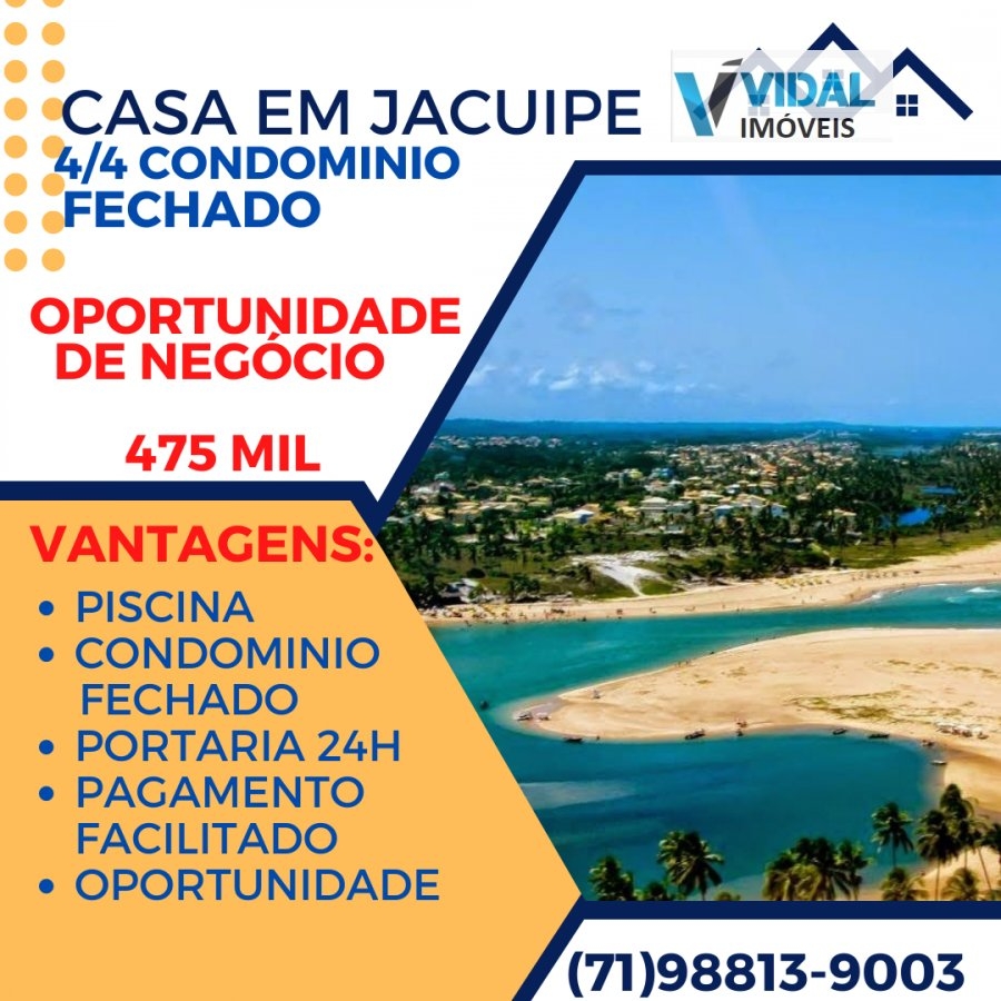 Casa Jacuipe 4 suítes 2 Suites , piscina, dentro de condomínio fechado, pagamento facilitado .