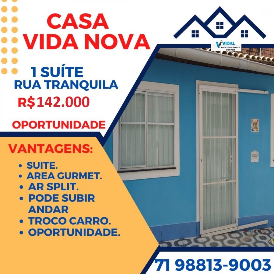 Vida nova, Lauro Casa 1/4, Quintal, Area Gurmet, Troco em Carro Popular, Oportunidade.